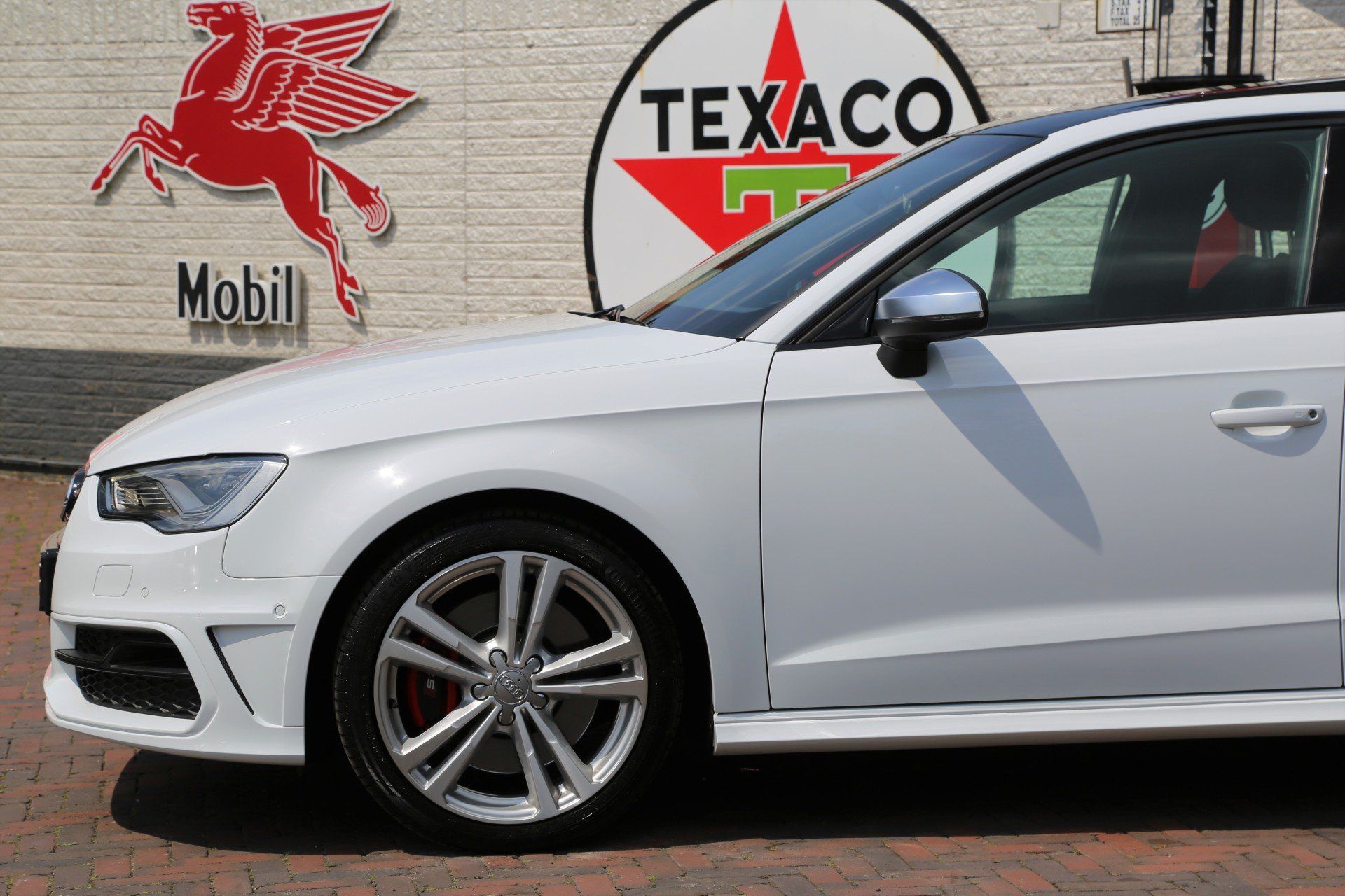 Natuurlijk zal je een andere A3 S3 kunnen vinden voor minder geld, alleen dan zal je ook genoegen moeten nemen met een import A3, een hogere kilometerstand & of mindere kwaliteit + extra's. Deze A3 heeft een prachtige wit metallic lak en precies de juiste extra's zoals, lederen / stof interieur met rood stiksel, airco met climate control, elektrische verstelbare ramen/spiegels en stoelen, radio/CD speler met Bang & Olufsen speakers, groot infoscherm uit dasboard met auto info en navigatie, lichtautomaat, Panorama dak, 6-versnellingen, bijzonder mooie originele lichtmetalen velgen van Audi, etc., etc.