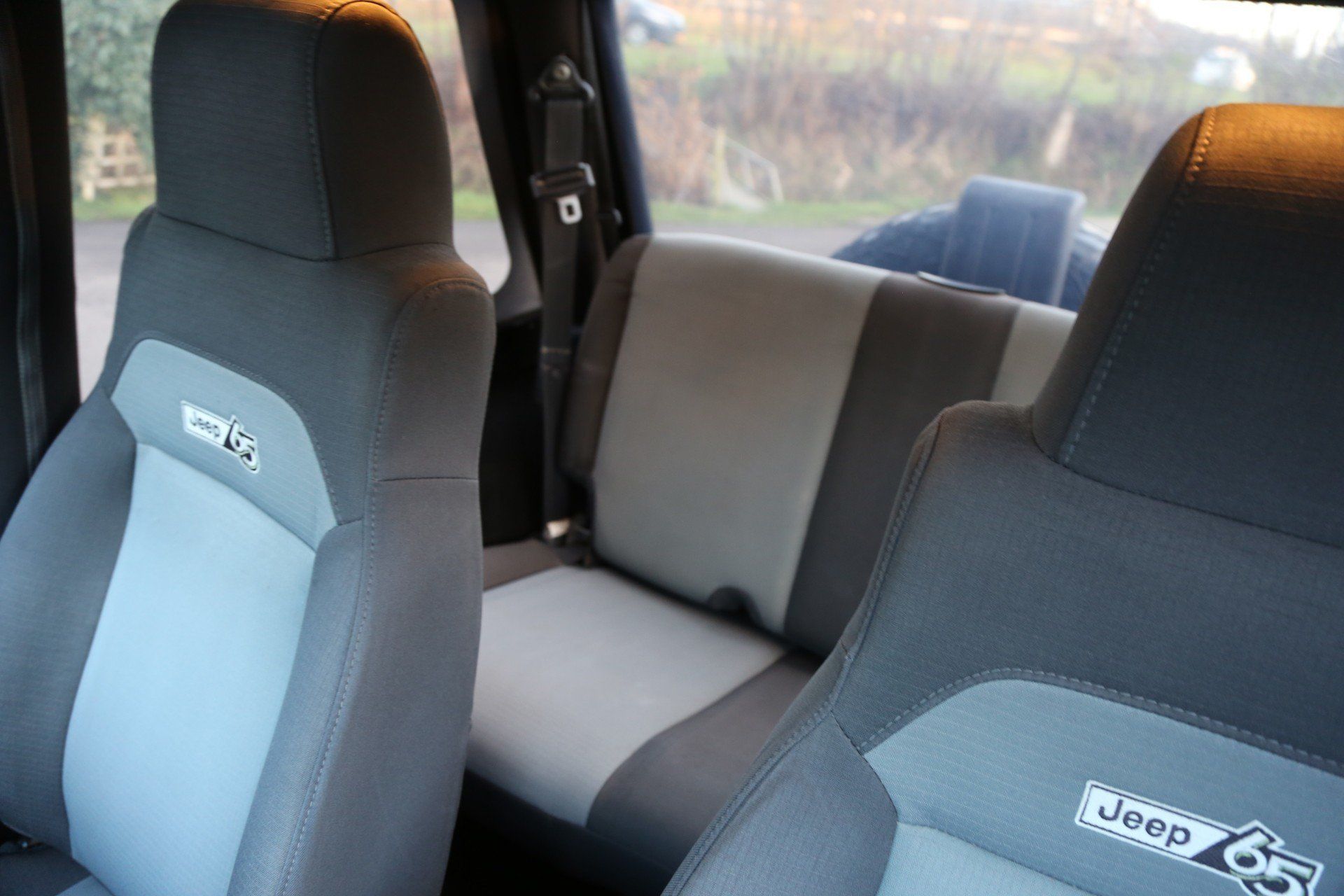 Deze Wrangler 65th Anniversary heeft het allemaal en is voorzien van soft-top en de gewilde halfe deurtjes, stoere lichtmetalen velgen, nieuwe speciale spiraalveren en schokdempers, etc. Wat mij enorm aanspreekt is de originaliteit van deze Wrangler, geen volgehangen kerstboom of overdreven extra's. Deze Jeep staat keurig recht op haar wielen en rijd/schakelt zoals je verwacht. De soft-top is keurig en de kunststof ramen zijn getint en opvallend mooi helder.