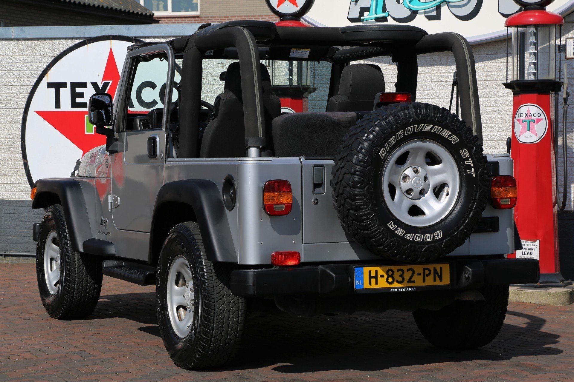 Uitgevoerd in zilver metallic & voorzien van de onverwoestbare sterke 4.0 L 6-cillinder lijnmotor. Met haar extra vermogen heeft deze Wrangler veel meer PK's dan haar andere zusjes met een 2.5 liter 4-cillinder motor. Deze 4.0 zescilinder bied niet alleen meer rust tijdens het rijden door het lagere toerental v/d motor maar vooral meer vermogen. Natuurlijk zal je een andere kunnen vinden voor minder geld, alleen dan zal je ook genoegen moeten nemen met een lichtere motor en/of mindere kwaliteit + extra's.