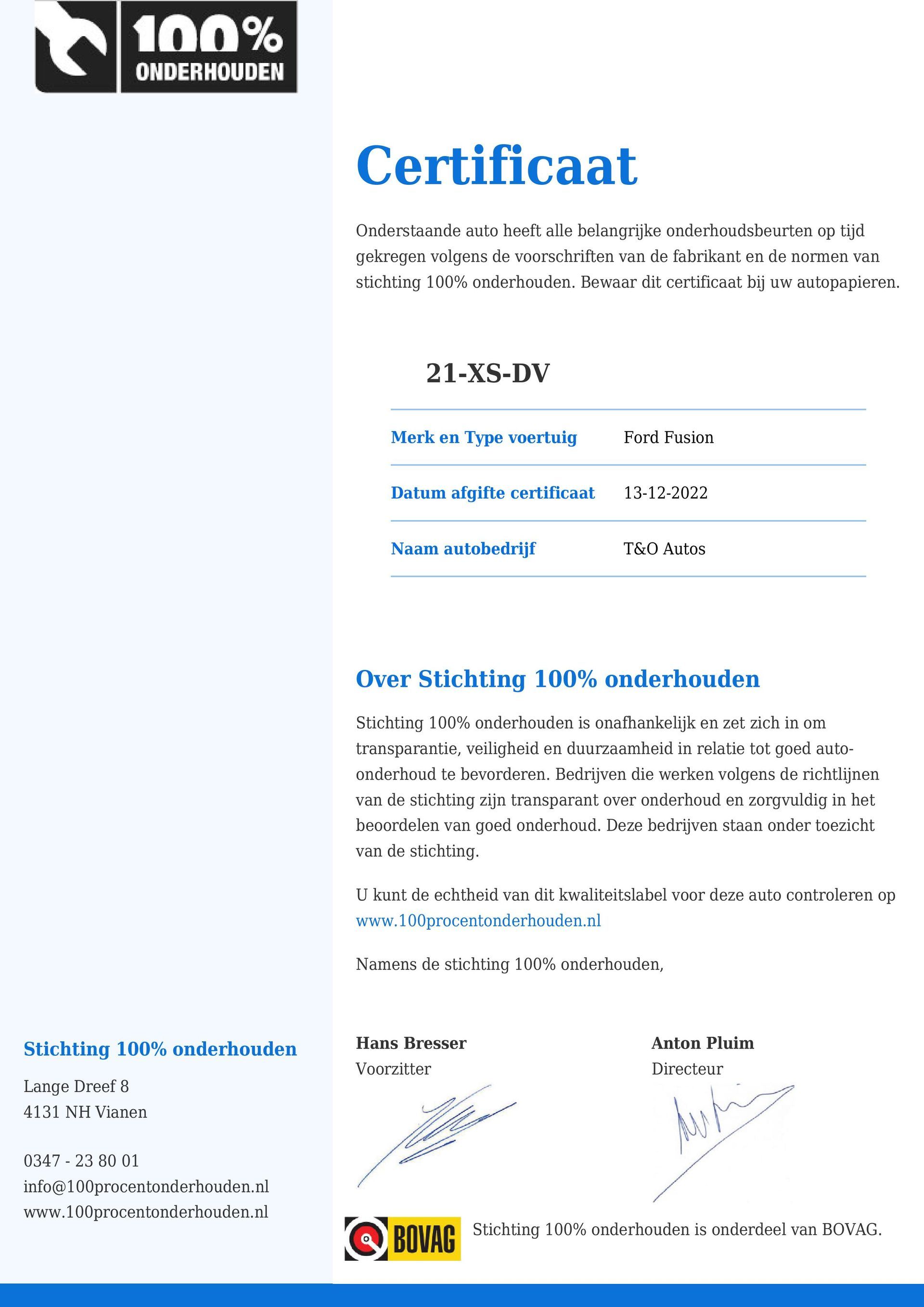 Misschien vind je een andere Ford Fusion tegen een lagere prijs, maar houd dan ook rekening met een eventuele mindere kwaliteit. Zo kan deze andere Fusion een importauto zijn met onbekend verleden, een hoge kilometerstand hebben zonder NAP en een lichtere motor of minder extra’s hebben. Kortom: bij T&O Auto’s ben je verzekerd van de beste prijs-kwaliteitverhouding, dus maak snel een afspraak om deze mooie occasion in het echt te bewonderen.