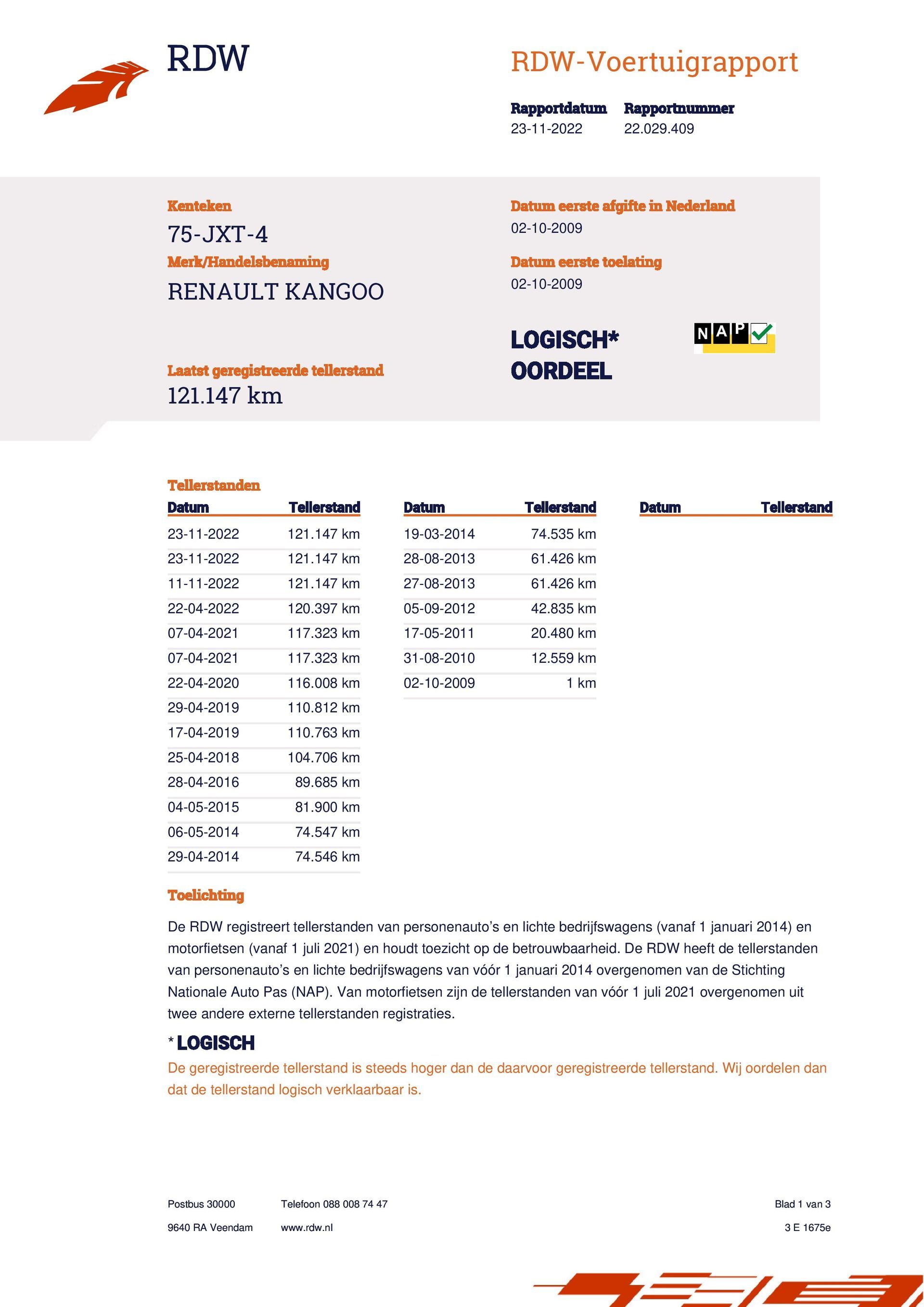 Kilometerstand: 121.147 km