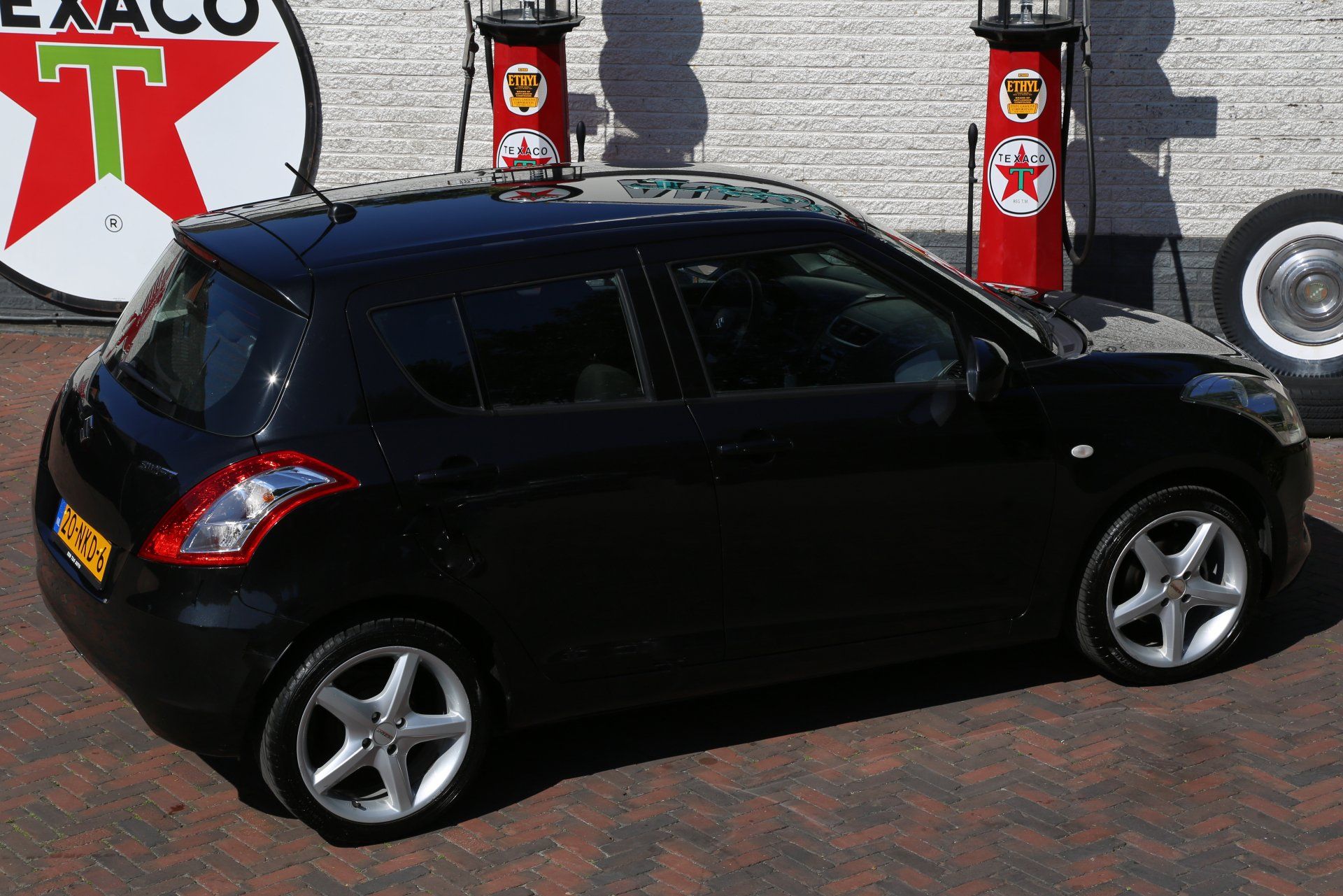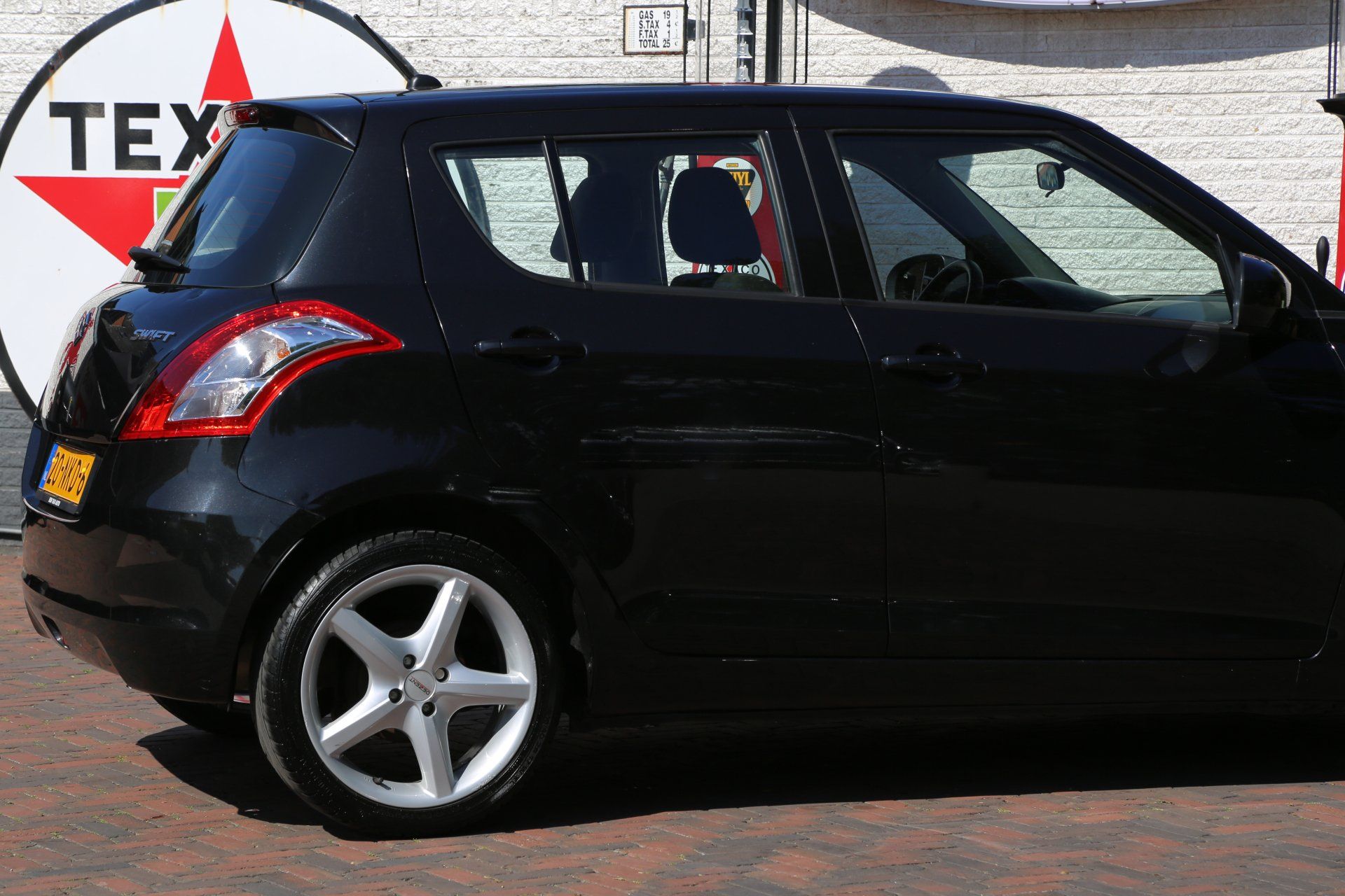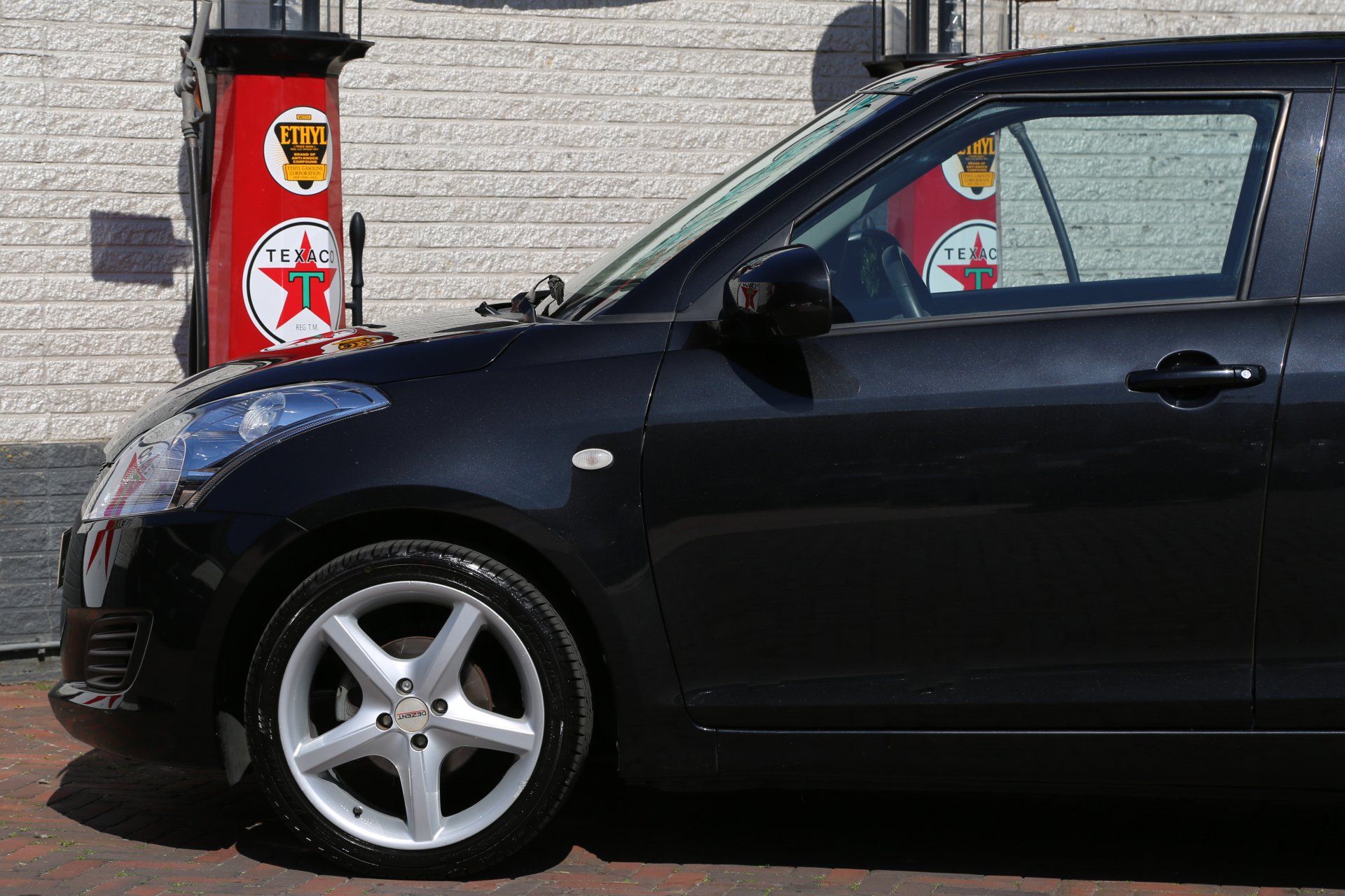 De zo goed als nieuwe carrosserie is uitgevoerd in een metalliczwarte kleur en de banden worden gesierd door 17" lichtmetalen velgen. Dankzij de getinte glazen geniet je van meer privacy en ben je beschermd tegen uv-stralen. Daarnaast is deze mooie occasion uitgerust met veel extra's. Zo bedien je de ramen en buitenspiegels elektrisch, geniet je van een verkoelende airco tijdens warme dagen én zit je in de winter op verwarmde voorstoelen. Luister muziek via de radio/CD/MP3-speler en bestuur de auto via het lederen stuurwiel. De comfortabele stoelen en het goede uitzicht op het verkeer staat garant voor rijplezier. Kortom: rijden in deze tweedehands Suzuki Swift is een feestje!