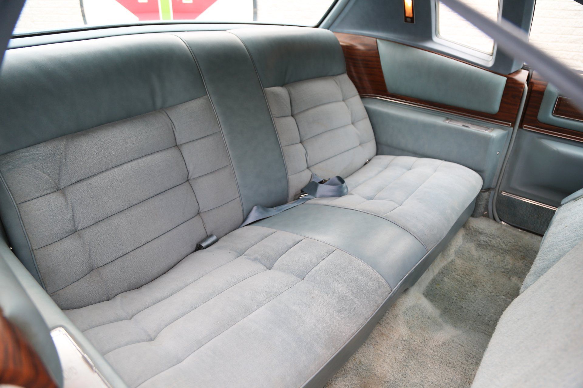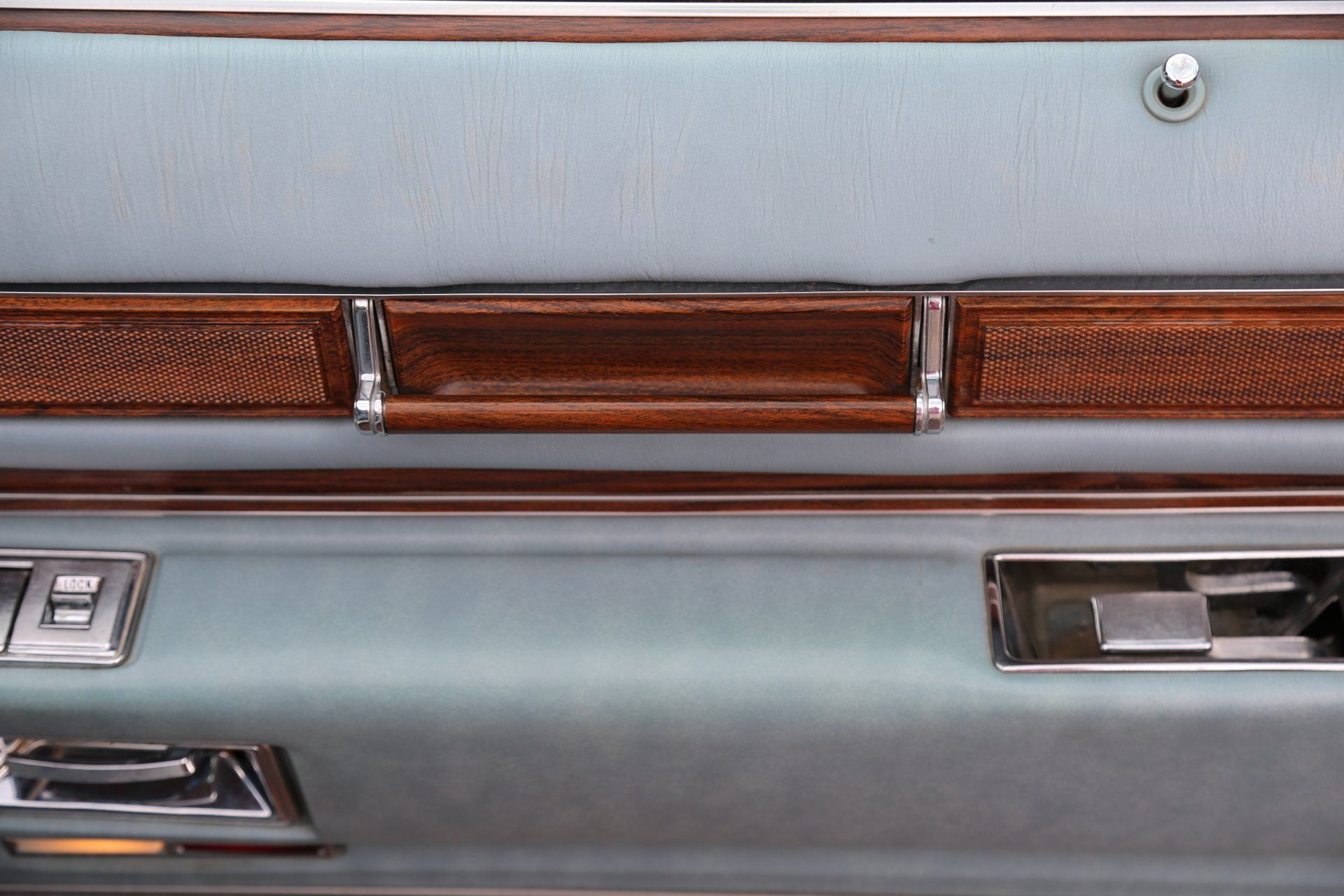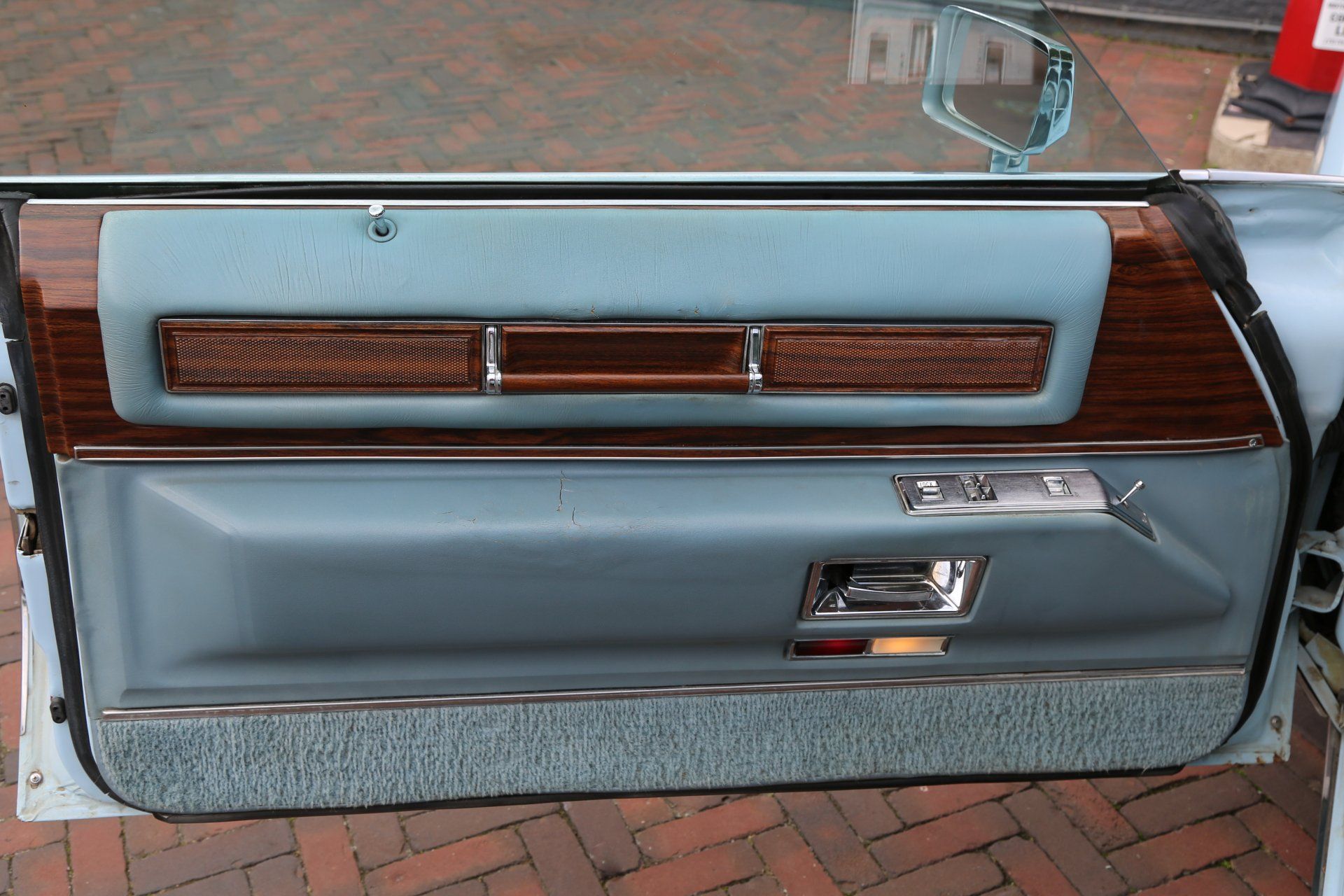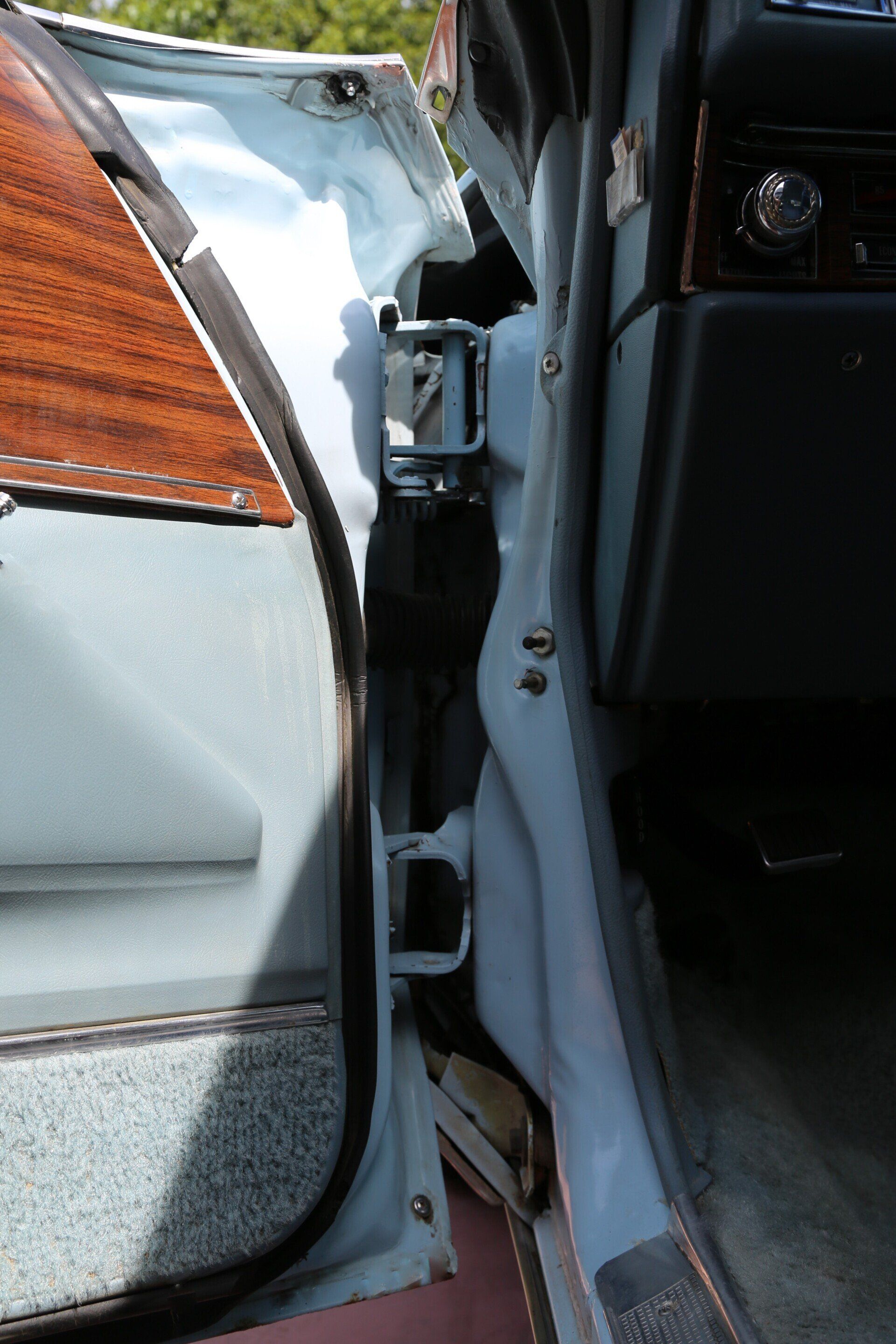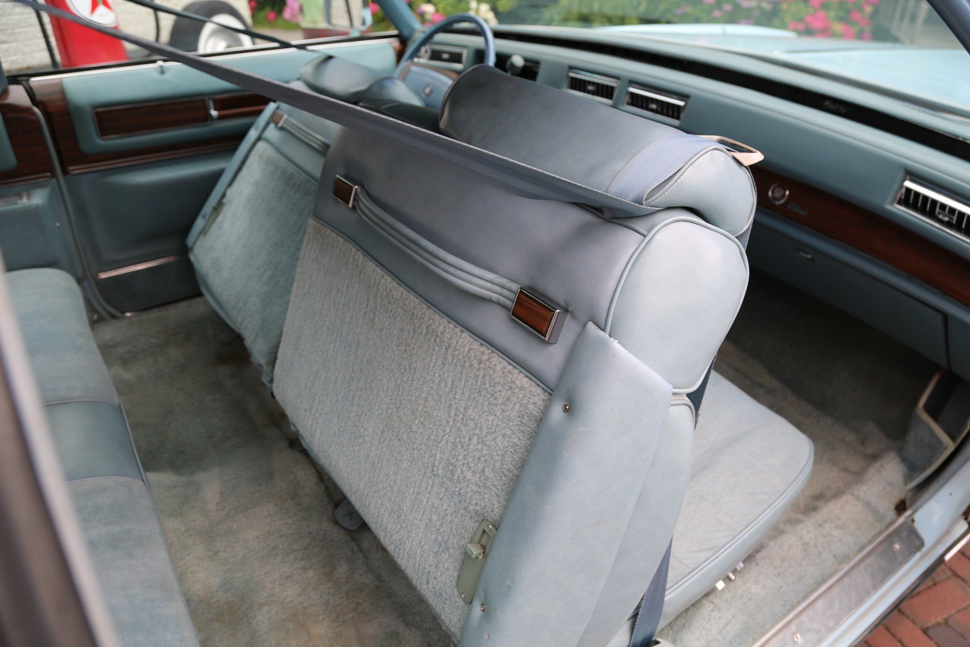 The exterior of this Cadillac has it all: gorgeous lines, a heavily padded landau blue vinyl roof, opera lights, body colored hub caps and elegant white walls to glide this land-yacht on the road. Her opulent-sink-into-interior is still original, and very comfortable. So comfortable you might want to crank up Donna Summer's "I Feel Love" or AC/DC's "You Shook Me All Night Long" just to stay awake. The climate control, 8-Track AM FM with factory CB and power three-way antenna, all work properly. Like so does the power trunk release with the soft close feature!