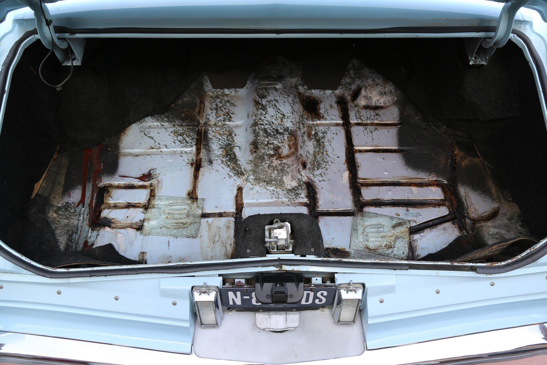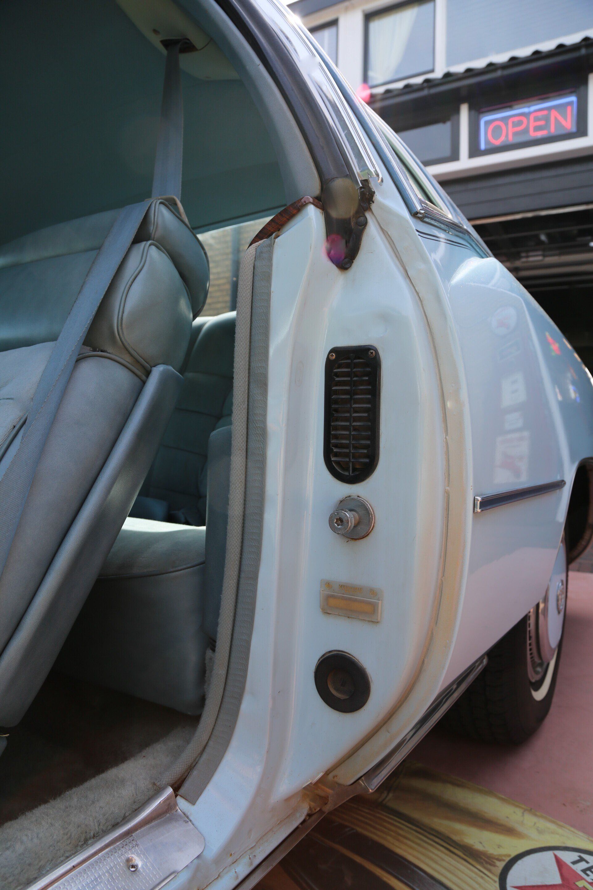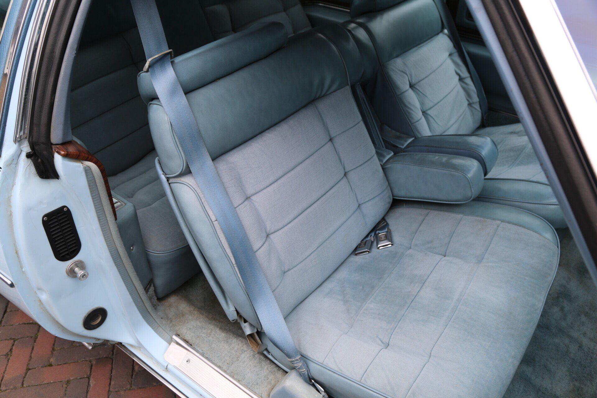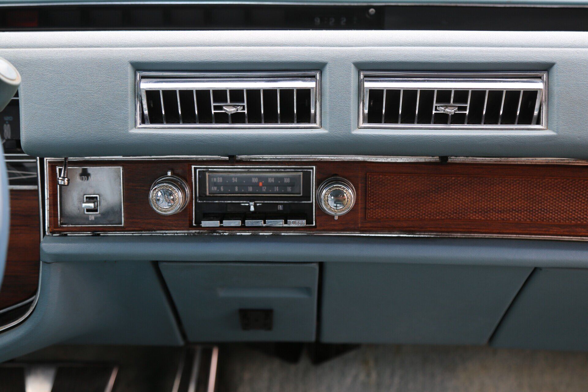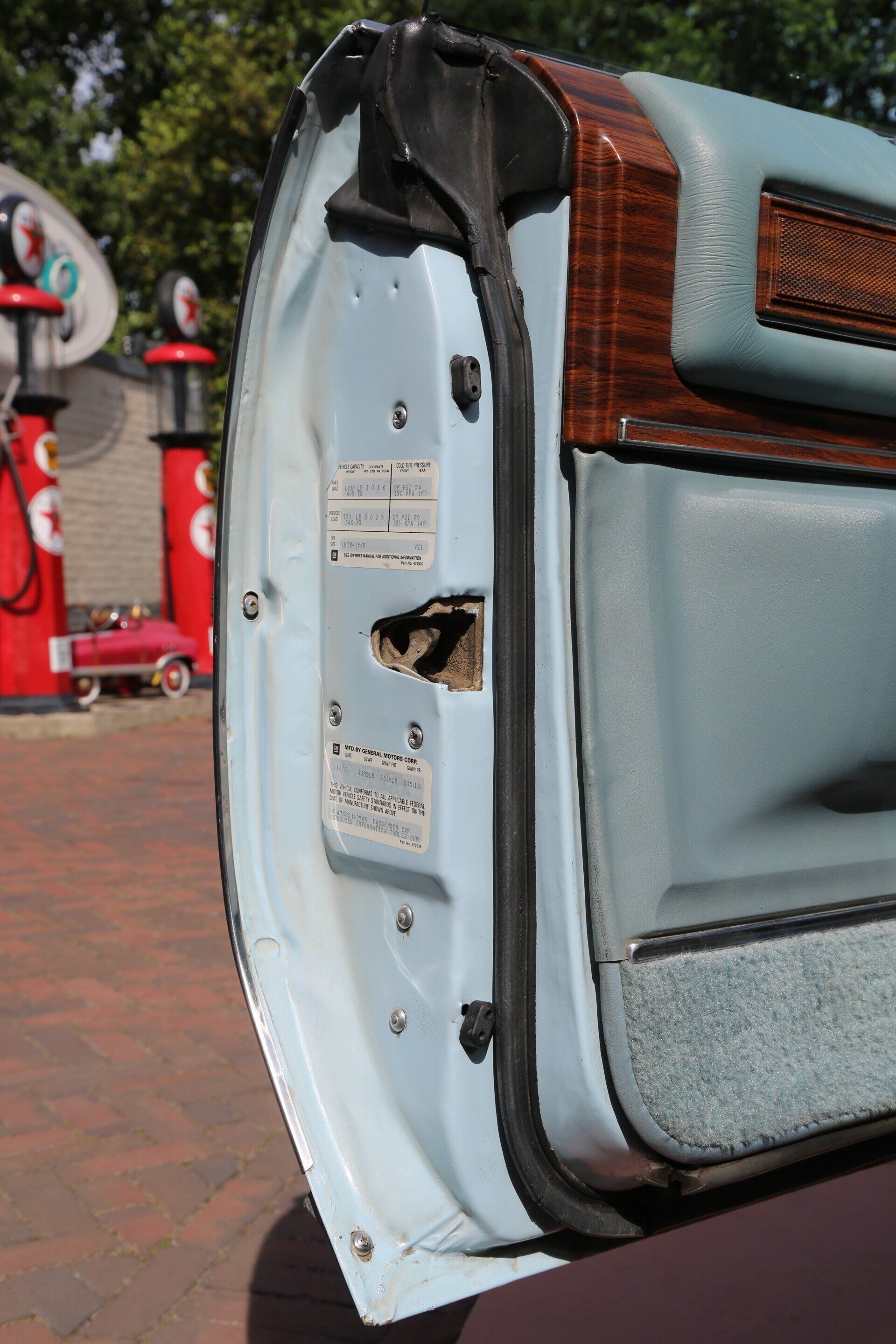 The exterior of this Cadillac has it all: gorgeous lines, a heavily padded landau blue vinyl roof, opera lights, body colored hub caps and elegant white walls to glide this land-yacht on the road. Her opulent-sink-into-interior is still original, and very comfortable. So comfortable you might want to crank up Donna Summer's "I Feel Love" or AC/DC's "You Shook Me All Night Long" just to stay awake. The climate control, 8-Track AM FM with factory CB and power three-way antenna, all work properly. Like so does the power trunk release with the soft close feature!