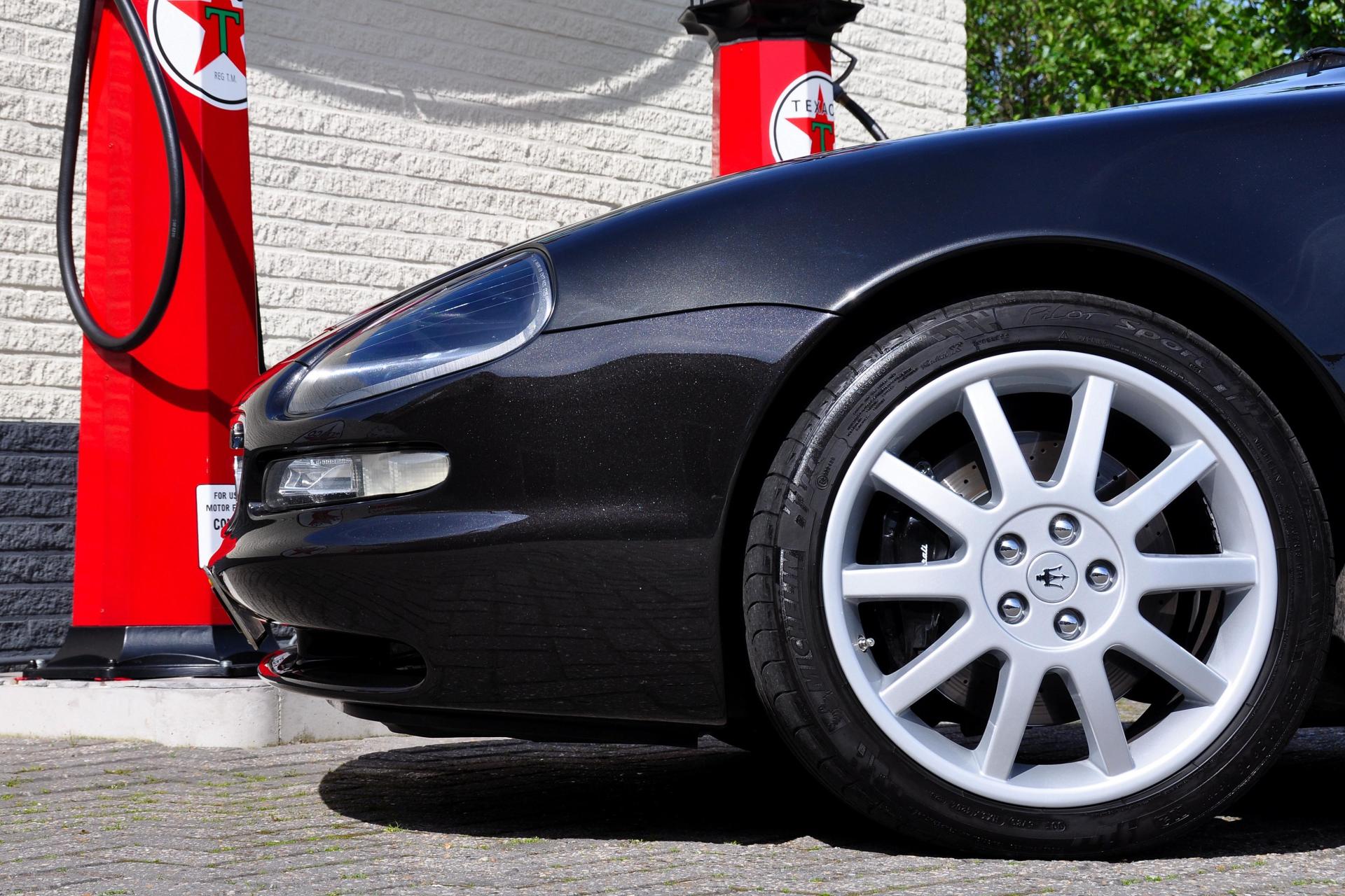 Een auto die je zelden tegenkomt: de Maserati 3200 GT. Dit exemplaar kwam in 2000 naar Nederland en heeft een complete onderhoudsgeschiedenis. We voerden recent een groot onderhoud uit, waarbij de distributieriemen zijn vernieuwd. Deze goed onderhouden GT heeft een mooie carrosserielak en z.g.a.n. originele velgen zonder beschadiging. Het interieur is als nieuw en het leer ruikt alsof ze rechtstreeks uit de Maserati-fabriek in Modena komt. Kenmerkend zijn haar schitterende Boomerang-achterlichten.