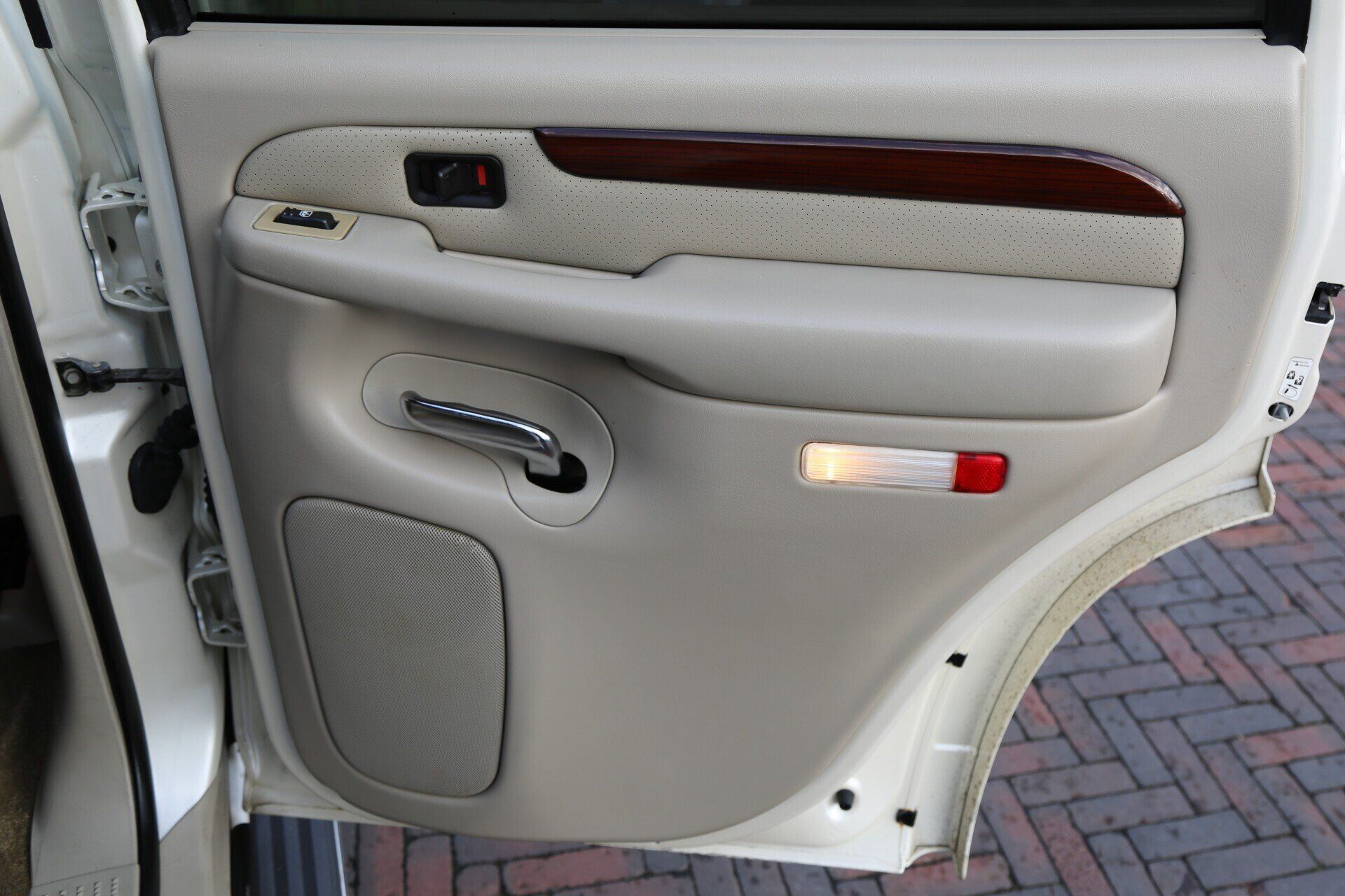 Deze parelmoerwitte Cadillac Escalade heeft een complete onderhouds- en kilometerhistorie. Hierdoor weet jij meteen waar je aan toe bent. Het keurige interieur is zo goed als nieuw en haar body is roestvrij. Neem plaats op de comfortabele stoelen en je merkt dat deze beter zitten dan de bank thuis. Take a ride on the wild side: lange ritten in deze Amerikaanse topper worden vanaf nu een feestje! Daarnaast heeft deze full-option Cadillac Escalade nog veel meer extra's: een verkoelende airco, elektrische ramen en spiegels, een derde rij stoelen, lichtmetalen velgen... And the list goes on and on! Dankzij de sterke 6.0 V8-motor en het zware onderstel worden lange ritten een peulenschil. Een full-option Escalade in een stoer, maar beschaafd design en in deze uitstekende conditie vind je niet vaak. Toch wisten wij er een op de kop te tikken. ;)