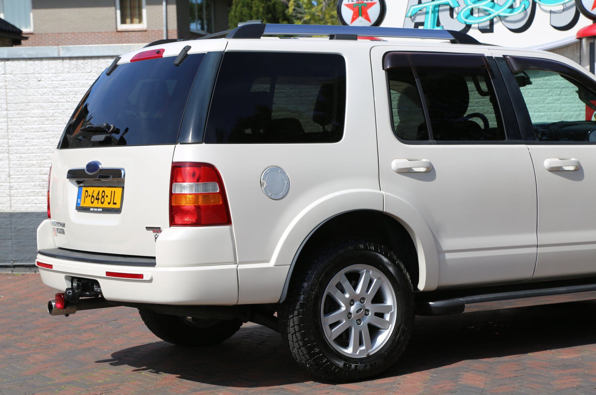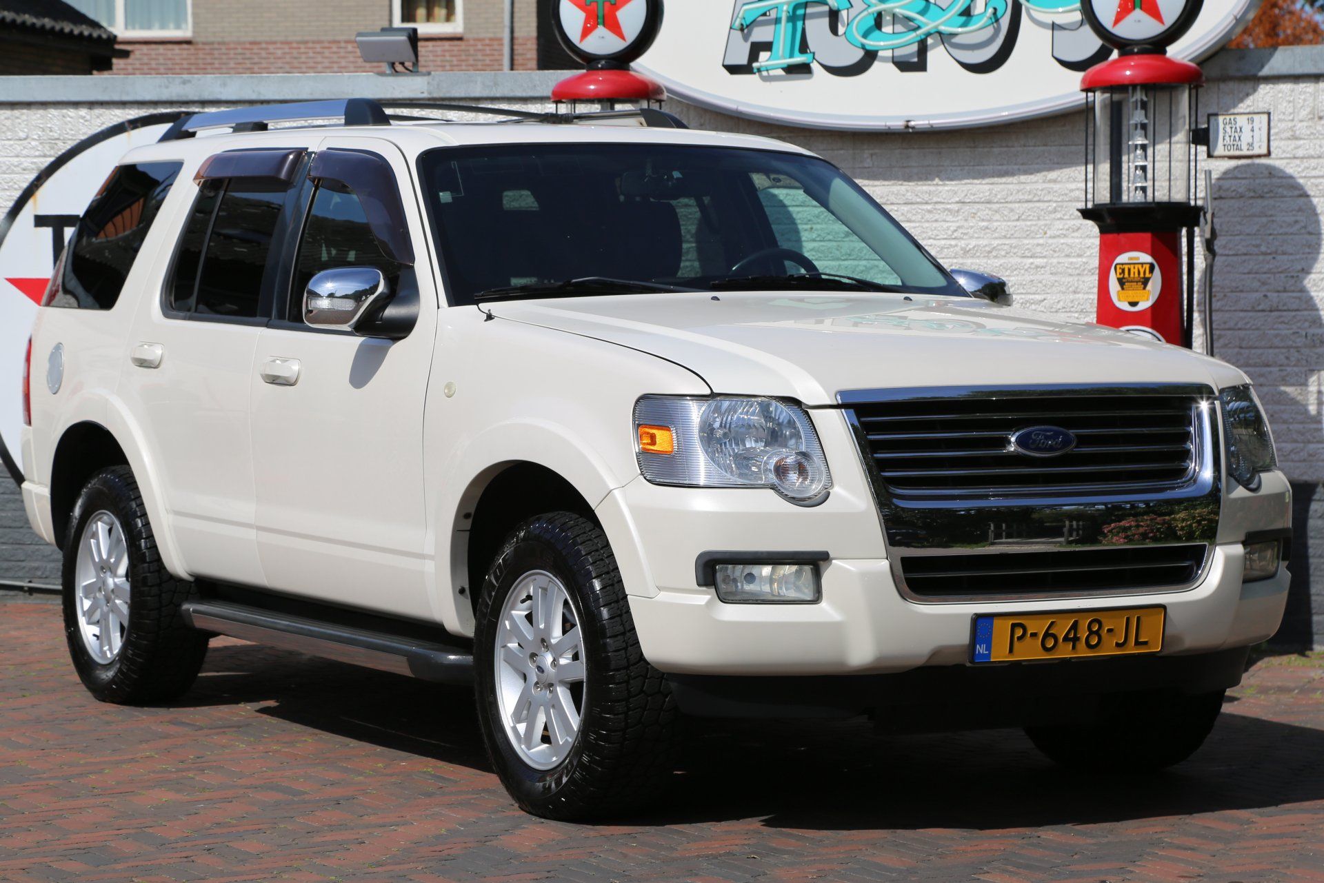 Deze parelmoerwitte Ford Explorer heeft een complete onderhouds- en kilometerhistorie. Hierdoor weet jij meteen waar je aan toe bent. Het keurige interieur is zo goed als nieuw en haar body is roestvrij. Neem plaats op de comfortabele stoelen en je merkt dat deze beter zitten dan de bank thuis. Take a ride on the wild side: lange ritten in deze Explorer worden vanaf nu een feestje! Daarnaast heeft deze Amerikaanse topper nog veel meer extra's: een verkoelende airco, elektrische ramen en spiegels, een derde rij stoelen, lichtmetalen velgen... kortom deze Explorer heeft alles wat jij nodig hebt. Dankzij de sterke 4.6 V8-motor en het zware onderstel worden lange ritten een peulenschil. Het design is opvallend stoer en tegelijkertijd beschaafd: een SUV die je niet snel tegenkomt. Full-option Explorers in deze uitstekende conditie worden niet in overvloed aangeboden, toch wisten wij er een paar op de kop te tikken.